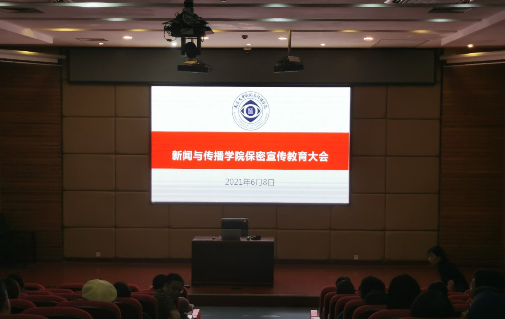 2021年6月8日,新传学院在人文楼A143召开保密宣传大会,学院全体教师观看了保密宣传片。