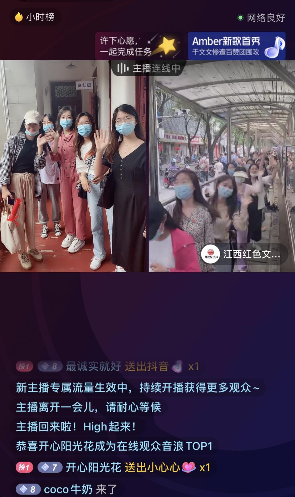 图8:文化推广小队在车上直播 图9:文化推广小队现场直播 经过一下午的参观学习,同学们深刻了解到了南昌起义,接受了一次生动的党史教育。红色是江西的底色,更是中华人民共和国的底色。作为新时代的青年学生,我们要立足江西本土的红色文化,讲好党史故事,传承好红色基因,让红色基因、革命薪火代代相传。