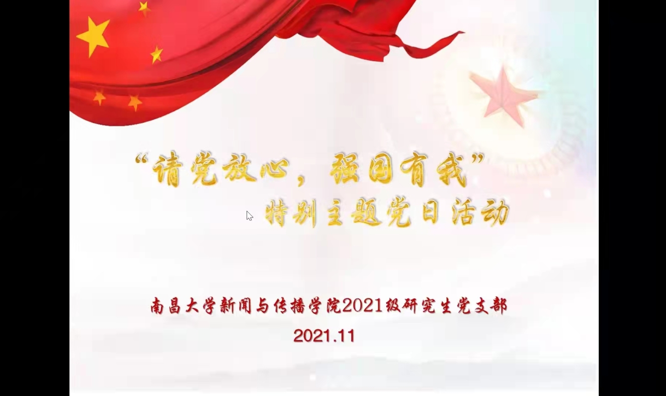 按照疫情防控要求,2021级研究生党支部在11月12日以线上形式开展了“请党放心、强国有我”特别主题党日活动。在此次党日活动中,全体党员重温习近平总书记在庆祝中国共产党成立100周年大会上的重要讲话视频并对此进行讨论、积极发言。邱雨瑶同志表示伟大建党精神激励她不断牢记自己的初心与使命,不断以过去的经验为鉴,不断反思,以积极昂扬的心态更好地武装自己。 习总书记“七一”重要讲话具有很强的政治动员力、历史穿透力、理论说服力,具有极为重要的政治意义、理论意义、实践意义,党支部全体党员在会后撰写了心得体会。