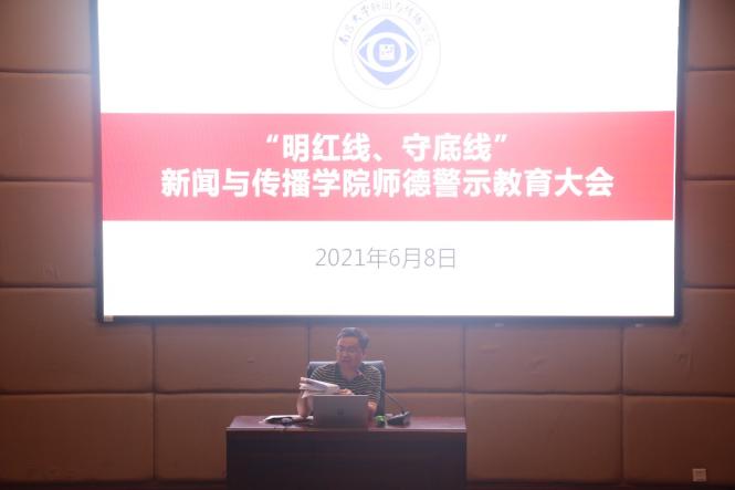 本网讯(通讯员 马逸凡)6月8日下午,sdaxc“守师道、铸师德“新时代师德宣传教育大会暨“明红线、守底线”师德警示教育大会在我院A143报告厅召开。本次会议由我院陈信凌院长主讲,全体教职工参加了会议。
