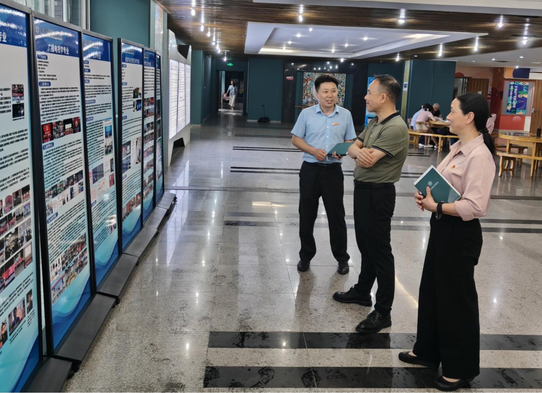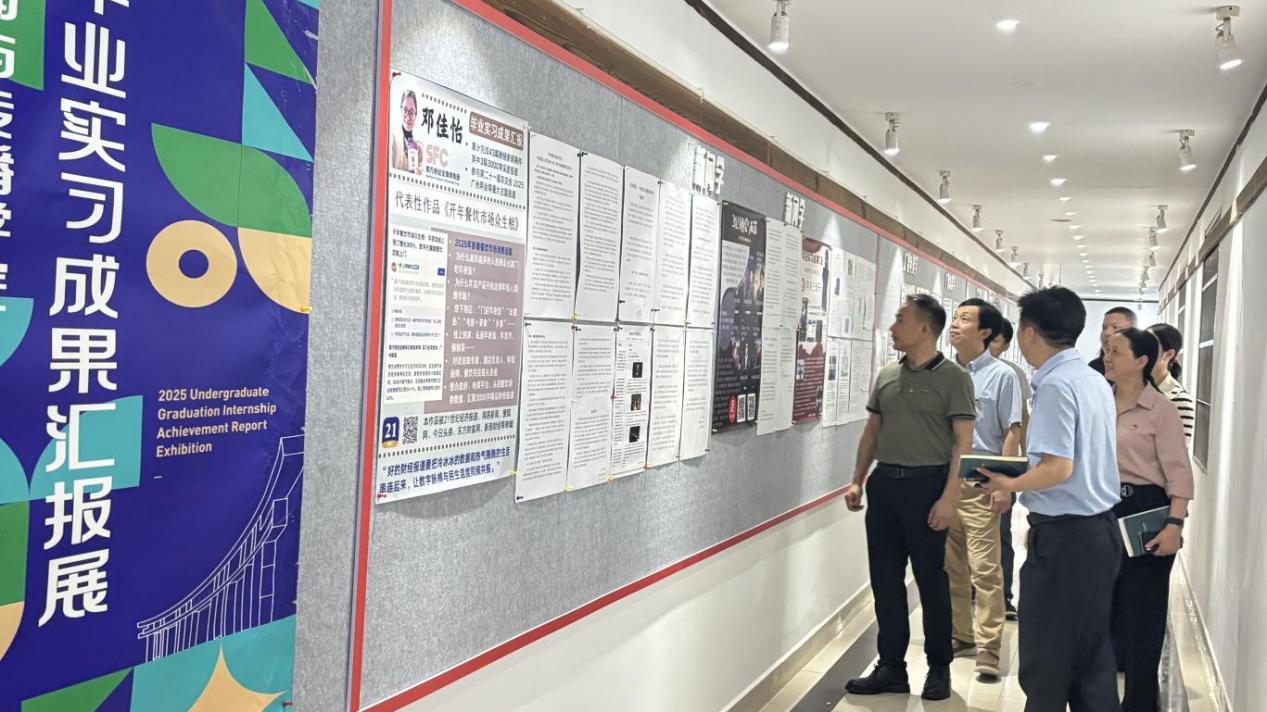 与会人员首先参观了现代传媒中心实验室,并详细了解2025届毕业实习成果汇报展情况。