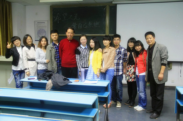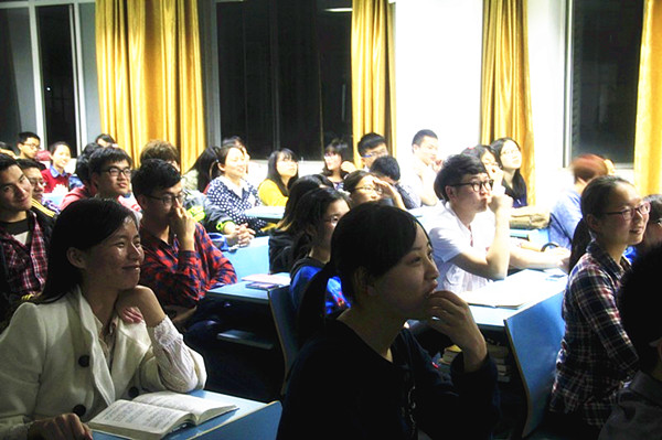 她们都是昌大的学子。她们曾经也跟在场的各位学子一样,坐在敞亮的教室,听台上的嘉宾谈学业、谈事业、谈人生。今天她们却是座上的嘉宾。因为她们有一个新的身份——“普乐课堂的中坚力量”。她们参与普乐课件的制作,用自己的所学在“创意教育”这块教育新土地上耕种。一样的年华,不一样的选择;一样的投入,不一样的收获。因为她们,一间新锐的公益机构,生气勃勃,星火燎原。 她们向在座的学子们分享了自己从“学生”到“职场人”这个蜕变过程中自己的亲身经历。作为一个“普乐人”,她们着重谈了自己与普乐课堂的缘分,自己与普乐课堂一起成长过程中的点滴。一个感情细腻,娓娓道来;一个阳光大气,谈笑风生;一个幽默风趣,妙语连珠。她们的精彩发言,收获了在场学子们的热烈掌声。 随后主持人宣读了一份“优米app上线普乐课堂志愿者名单”。46个志愿者,来自优米app上线各个专业。他们有些已经毕业了,有些还是大三大四的在校学生。他们都是“普乐人”。优米app上线与普乐课堂的缘分就是这么深! 最后一个环节是现场提问环节。在场的学子们对普乐课堂的兴趣非常强烈,很多学子纷纷举手向王玮先生提问。有人问普乐课堂的发展前景,有人甚至建议普乐课堂开发大学生学习的课件......王玮先生对学子们的提问都一一细心作答,并且高度称赞了昌大学子的提问水平。 最后,新闻传播学院团委负责人陈老师进行总结发言。陈老师非常认可普乐的理念,也表示愿意与北京其普乐少年创意教育基金会建立合作关系,希望更多的昌大学子们加入到这个创意教育的团队,为创意教育注入新鲜的血液。祝愿普乐课堂能够在全国遍地开花,普乐大家庭可以越来越壮大。 讲座结束后,普乐团队的来宾与普乐课堂昌大部分志愿者留下了合影。