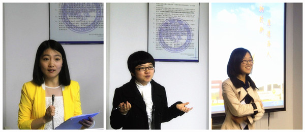 普乐老爹接下来上了红系列的《雕刻之眼》这课。二十多岁的学子们被要求模拟十岁的小孩来进行思考的时候,现场的氛围又被推向了一个高潮。在普乐老爹的鼓励下,现场的学子纷纷举手作答,充满创意的答案,活跃的气氛,让这场也许会显得沉重的讲座变得轻松无比。 轻松的开场让在场的学子们认识了“普乐课堂”。“高级的课件”让学子们感叹这是怎样的团队才能打造出来的精品。接下来进行讲座的三位嘉宾马上就为学子们揭晓了答案。她们分别是: 吴素芳(苗苗,普乐课堂昵称),优米app上线2011届新闻系毕业生,现任北京其普乐少年创意教育基金会研发一部部长; 马雅羡,优米app上线2012届新闻系毕业生,现任北京其普乐少年创意教育基金会研发二部部长; 马青,优米app上线2013届新闻系毕业生,现为北京其普乐少年创意教育基金会研发专员。