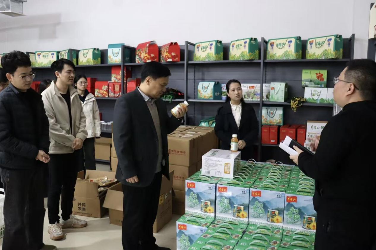 为全面了解从“田间地头”到“消费者餐桌”的完整产业链,学院一行专程考察了井冈山直播与销售基地。在井冈山惠农产业发展有限公司,琳琅满目的货架上,本地的烟笋、奈李、黄桃、红米等初级农产品,被创新开发成烟笋干货、奈李干、黄桃罐头、红米酥等一系列精致商品。公司负责人介绍,通过精深加工和标准化生产,不仅延长了农产品的保质期,更大幅提升了其经济价值,为打造农产品区域公用品牌奠定了基础。