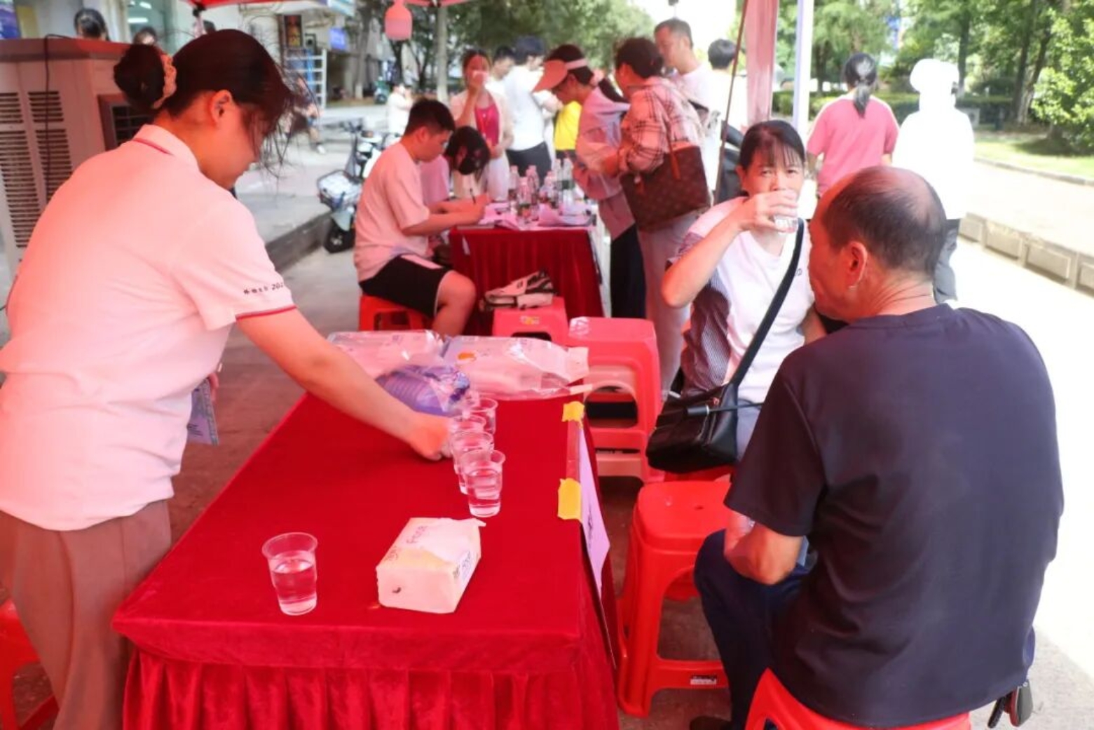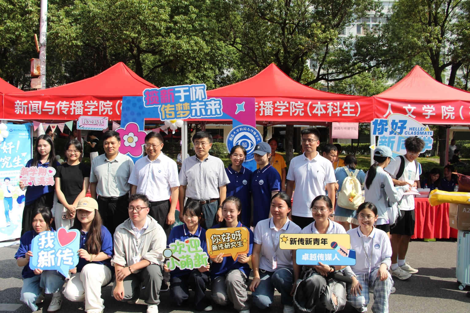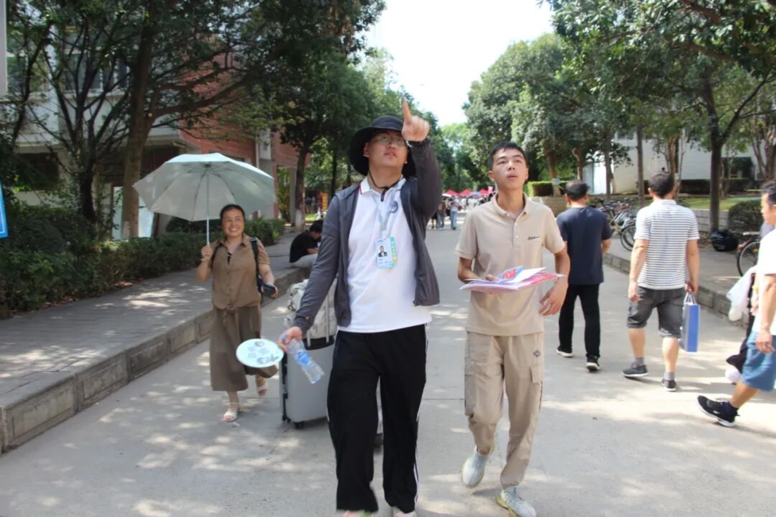 迎新现场,志愿者早早地来到迎新点,以饱满的热情和专业的态度投入到工作中。从新生踏入校园的那一刻起,志愿者们就主动上前迎接,帮忙搬运行李,引导新生完成报道注册、领取校园卡、办理住宿手续等一系列流程。在宿舍楼下,学院还专门为家长设置了休息区,志愿者们主动为家长递上饮用水,学院还准备了各类充满创意和活力的拍照打卡桁架为新生和家长留下美好的入学回忆。