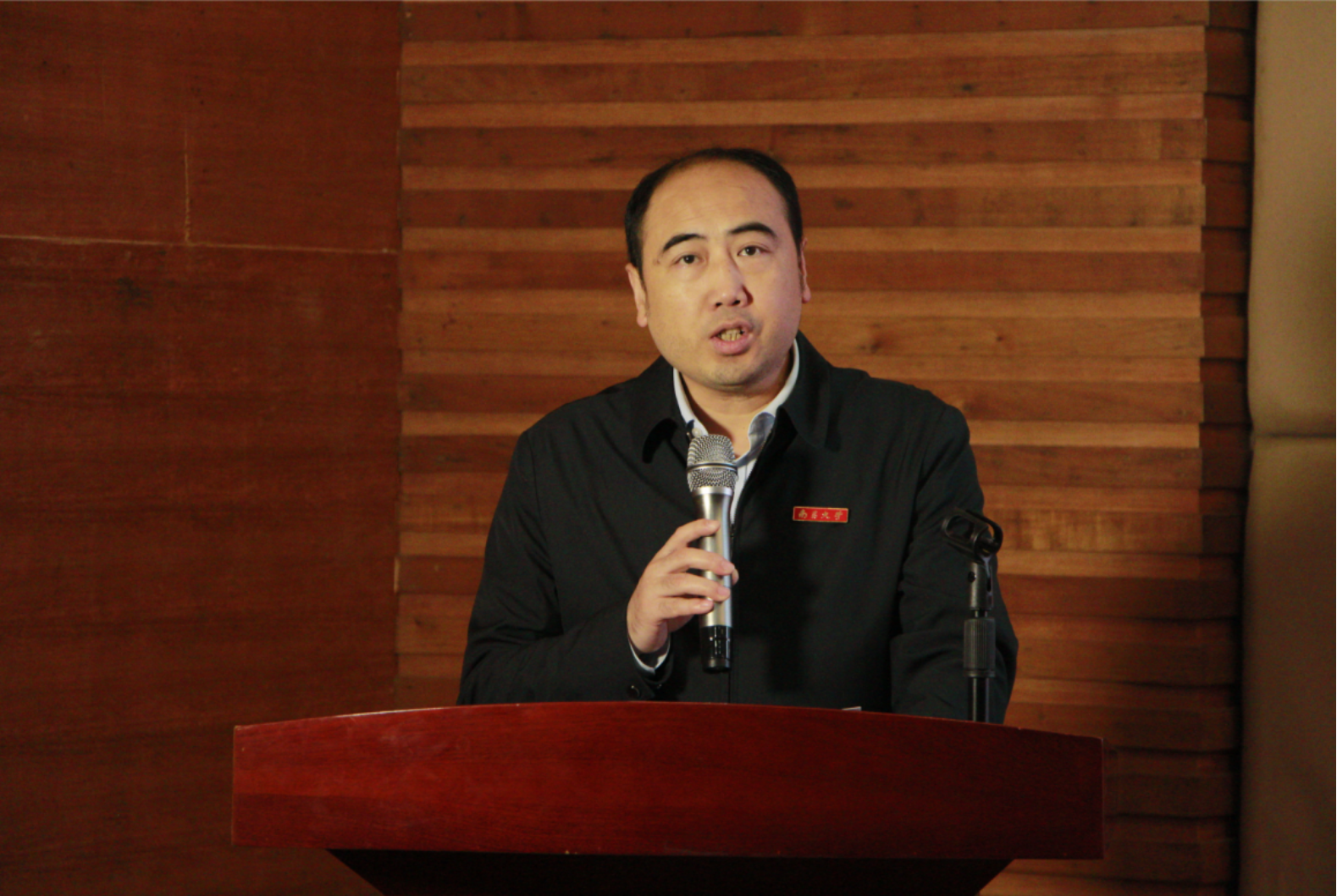 图:融媒精英班的学生代表徐天钰发言 (张宴语摄) 开班典礼后,严文斌作“融媒讲坛”第十一讲讲座,校党委常委、宣传部部长饶勇主持讲座。严文斌社长主讲《中国国际传播:缘起与探索》,结合自己多年丰富的理论功底和实践经验,带领菁英班学习习近平总书记关于中国国际传播的问题的认识,通过自身亲历的事件和大量的国际传播案例,深入浅出地分析了中国国际传播的演进过程、实战案例以及工作思考,告诉年轻人,要敢于担当、擅于担当,要“敢说”,也要“会说”“快说”。