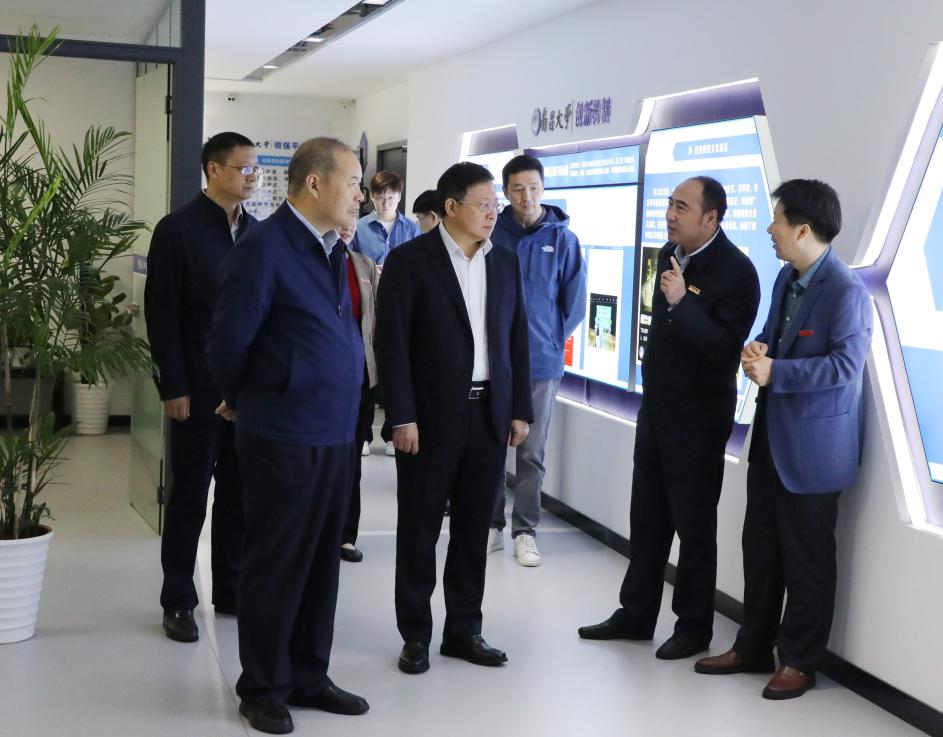 图:校党委书记罗嗣海等陪同严文斌社长参观融媒体中心