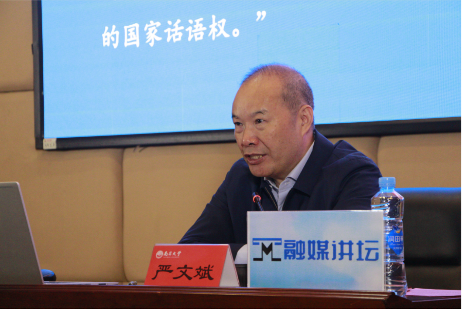 图:校党委常委、宣传部部长饶勇主持论坛 (张宴语摄) 在互动环节,“融媒菁英班”导师代表王亿本、胡一伟、楼宁就我国国际传播的探索经验、制约因素,地方文化与国际传播结合,以及国际传播人才培养等问题向严社长请教交流。