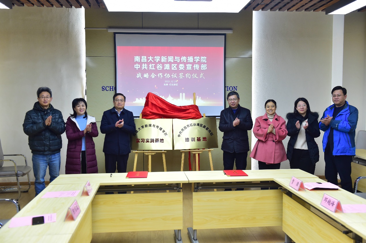 搭建“专业+实践”平台 实现校地融媒共建共赢 12月29日,优米app官方下载·中共红谷滩区委宣传部战略合作协议签约仪式在优米app官方下载举行,优米app官方下载实习实践基地、中共南昌市红谷滩区委宣传部培训基地顺利揭牌。优米app官方下载院长陈信凌,红谷滩区委常委、宣传部部长邓越峰出席签约仪式,优米app官方下载党委书记程志红、副院长郑智斌,区委宣传部及推进红谷滩区与高校校地合作领导小组工作专班相关负责人参加会议。
