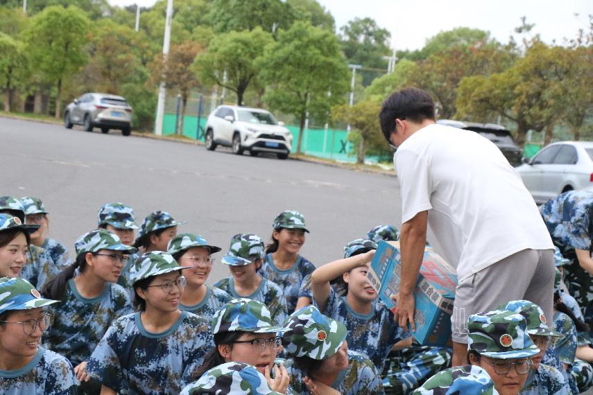 考虑到天气炎热,新生们在军事训练中需及时补给身体能量,学院专门为新生们准备了电解质水。院领导和辅导员将这份清凉与呵护送到每一位同学手中。