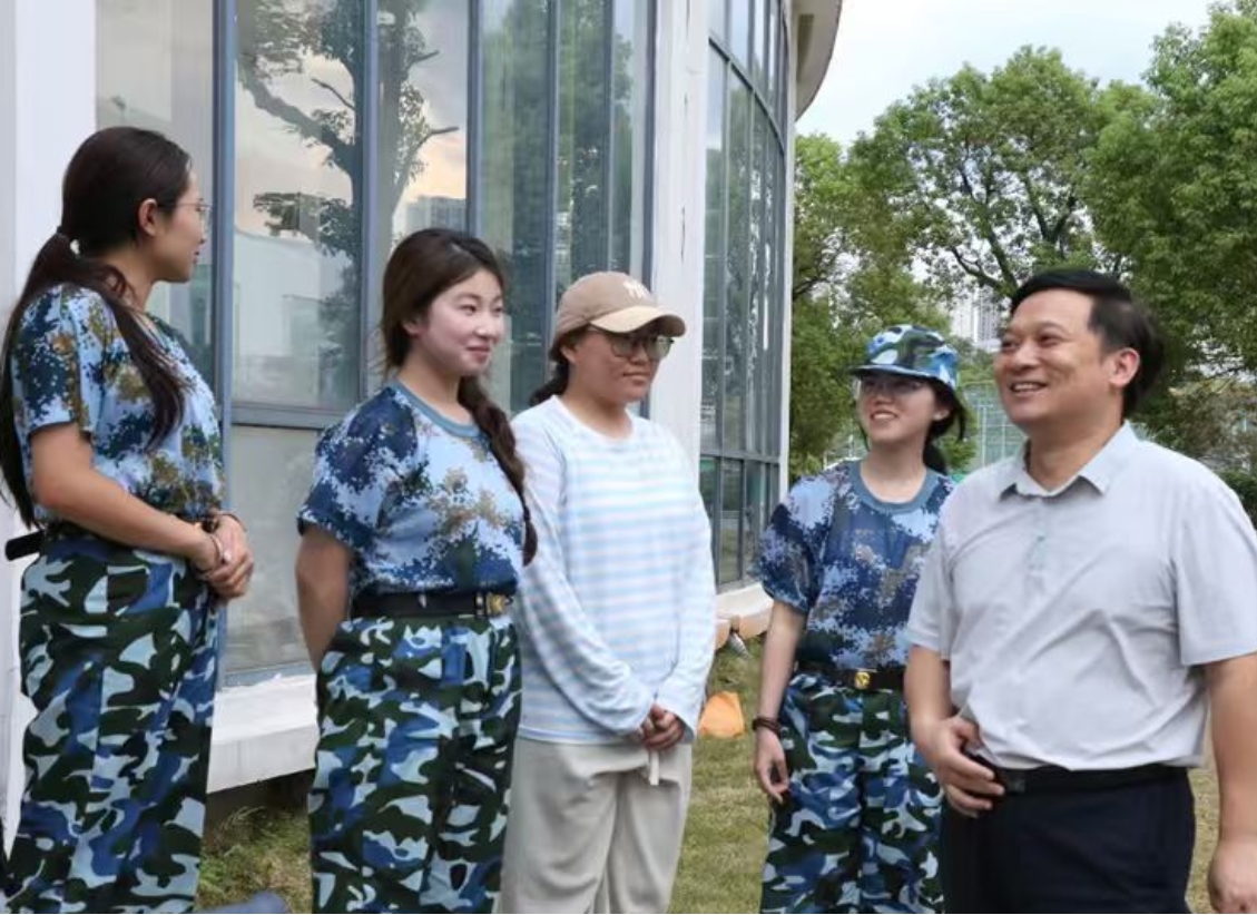 9月9日下午,sdaxc党委书记欧阳润、党委副书记范若云,以及全体辅导员来到军训场地,看望2025级军训新生和学长小教员,为他们送去关怀与鼓励。 训练场边,学院领导详细查看了学生的训练状态,频频叮嘱大家劳逸结合,并对军训以来取得的阶段性成果给予肯定。欧阳润代表学院党委向全体参训新生致以问候,对他们不畏酷暑、精神饱满的训练态度给予充分肯定和暖心勉励。欧阳润还慰问了带训的学长小教员,勉励他们要勇担责任、以身作则,用实际行动发挥榜样引领作用。并叮嘱带班辅导员要尽职尽责,密切关注高温天气下新生们的身体状况,及时补充饮水及防暑药品等必备物资,确保军训工作安全有序进行。