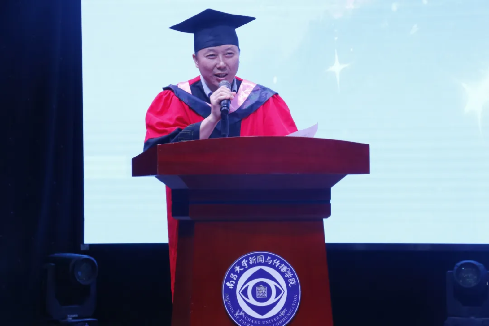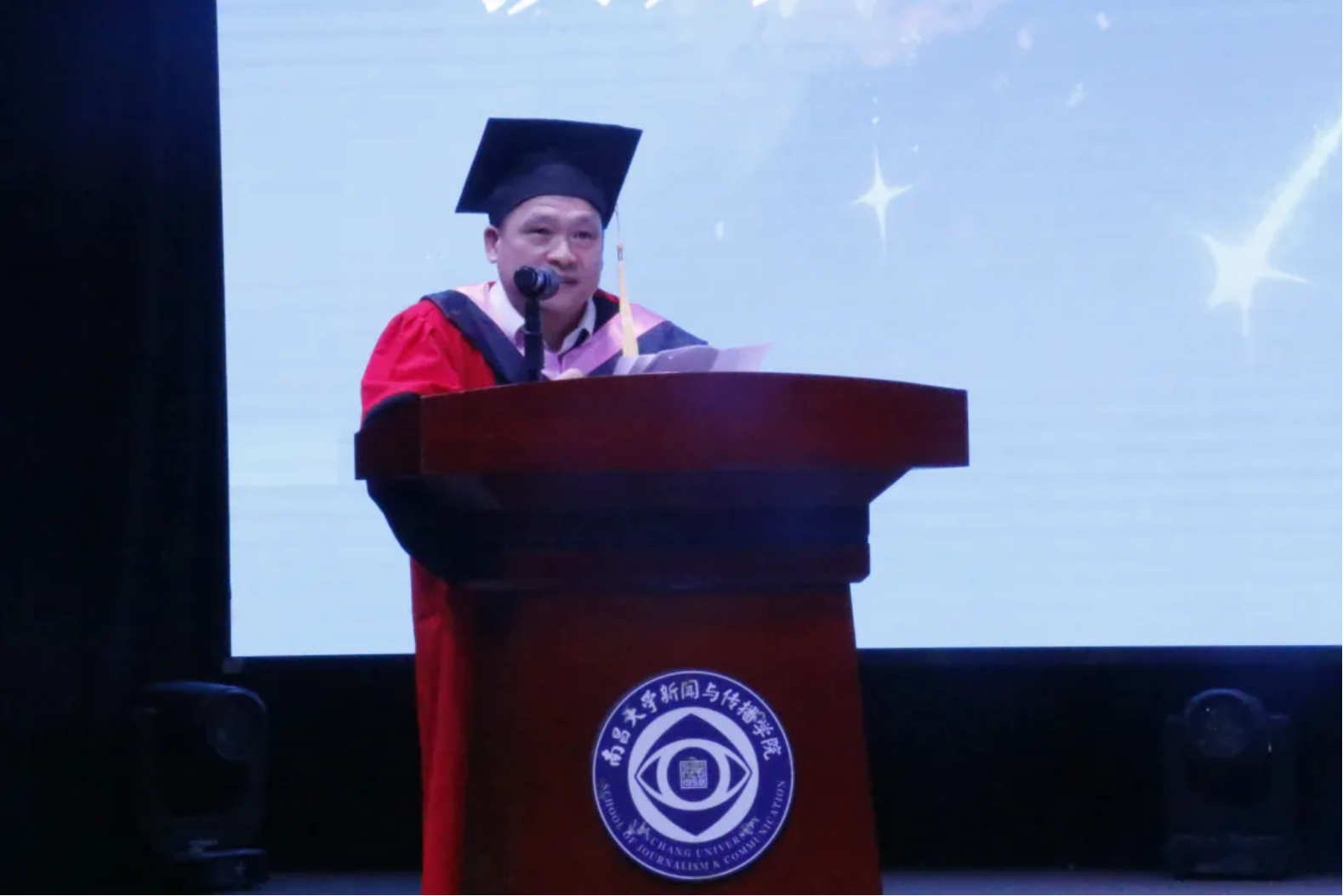 教师代表周浩为同学们送上鼓励与祝福。他动情地说,希望同学们能够勇敢直面困境,将其打磨成直面挑战的韧性,并始终保持对真理的追求和对社会责任的担当,勇担时代赋予传媒人的重任,用专业知识和热情为社会进步贡献自己的力量。