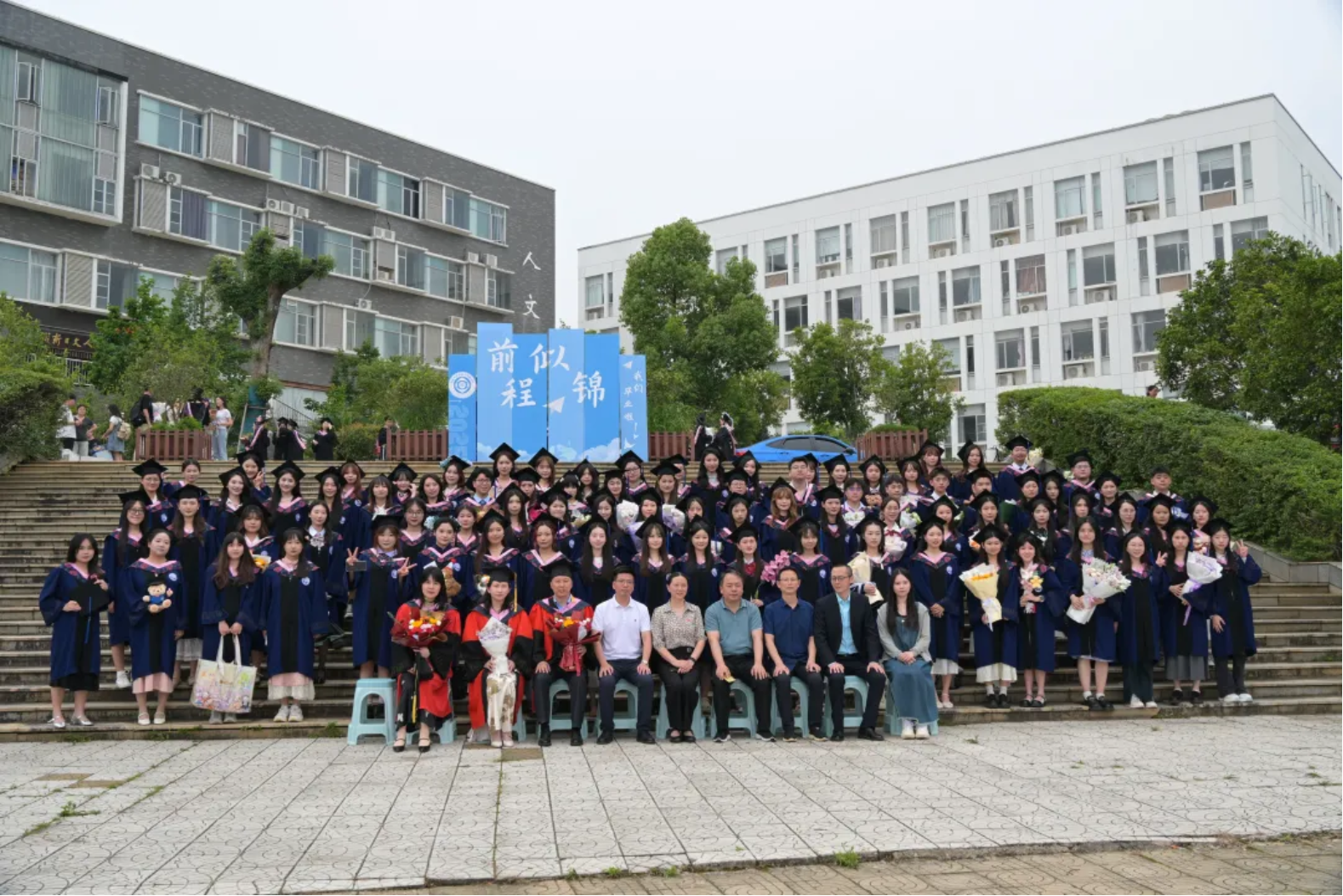 最后,全体师生移步至人文楼前合影留念。在阳光的照耀下,一张张笑脸定格成了青春最美的模样。随着快门声的响起,毕业典礼缓缓落下帷幕。 毕业既是满载而归的终点,更是乘风破浪的起点。祝愿sdaxc2025届毕业生永葆“新民进德”的探索热忱,践行“传道正心”的使命担当,前程似锦,初心永驻。 (文:孙艳、孙璟坤 图:俞莉萍、蔡国琴、尹木草)