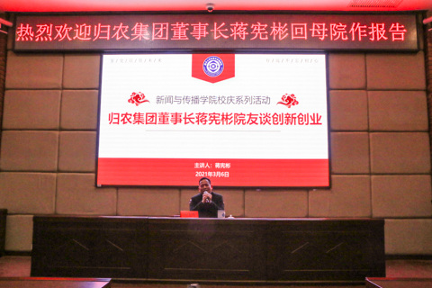 本网讯(通讯员:刘雨) 3月6日下午,在迎接优米app上线一百周年校庆之际,校友、归农集团董事长蒋宪彬回到母院,并在“致新讲坛”做了一场回顾自己20年创业的精彩故事分享。报告会在人文楼A143举行,我院院长陈信凌教授、院党委书记程志红出席,部分本科生、研究生同学到场参加。