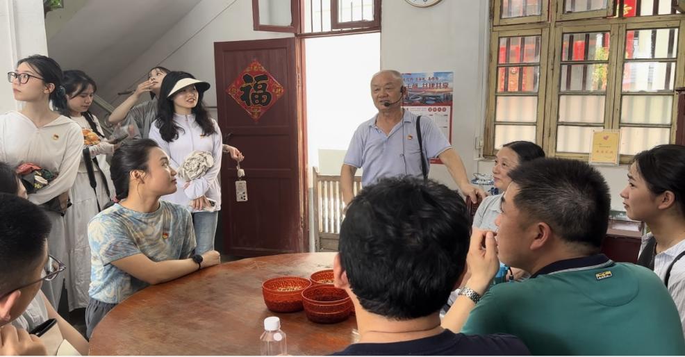 随后,实践队追随习近平总书记考察江西的足迹来到革命老区梓山镇潭头村开展研习活动。走进潭头村,一面红旗造型雕塑格外引人注目,上面刻着九个大字——“幸福都是奋斗出来的”。这是潭头人辛勤奋斗的真实写照,也是当地村民奔向美好生活的力量源泉。舒涛书记带领实践队来到村民孙观发家,聆听他讲述“习近平总书记来我家”的故事,“习近平总书记来到了潭头村,来到了我的家里,看厨房、进卧室、入客厅……总书记和我们一起拉家常,问得特别细,十分诚恳亲切。”最后,在孙观发老人和实践队员们的相互告别中结束了重温长征复兴路的于都之旅。