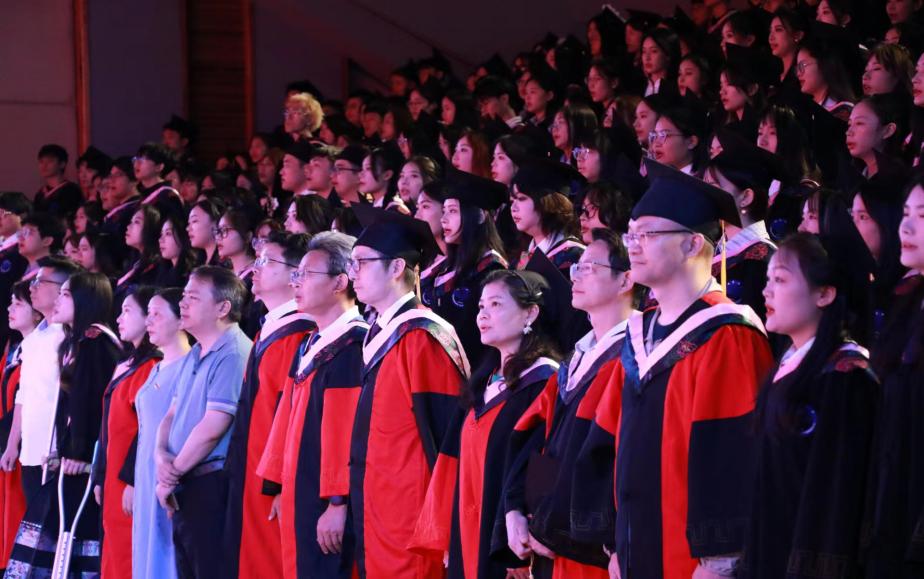 上午9:00,毕业典礼在雄壮嘹亮的国歌声中拉开序幕。