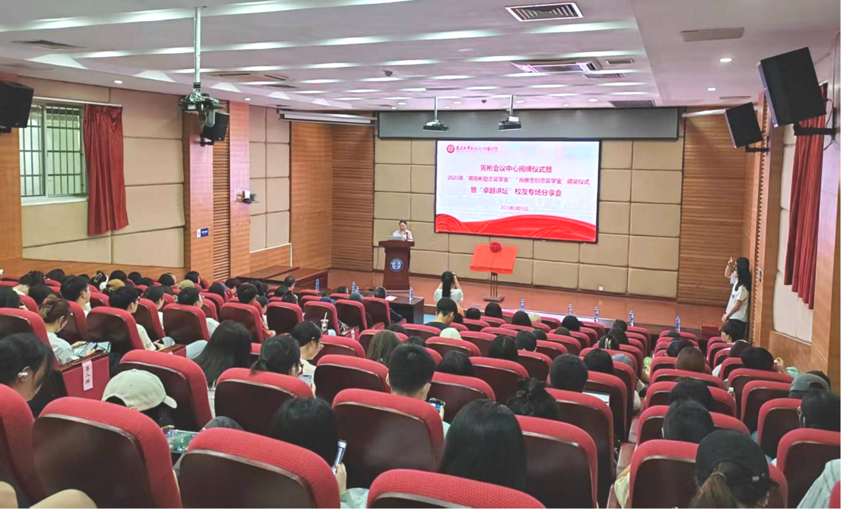 5月16日下午,sdaxc在人文楼A143报告厅举行宪彬会议中心揭牌仪式、2025年“蒋宪彬励志奖学金”“肖继忠创意奖学金”颁奖仪式、“卓越讲坛”校友专场分享会三项重要的校友活动。本次活动以“感恩・激励・传承”为主线,通过揭牌致敬、奖学育人、校友领航三大环节,构建起学院文化建设与人才培养的深度联动。学院党委书记舒涛主持活动。