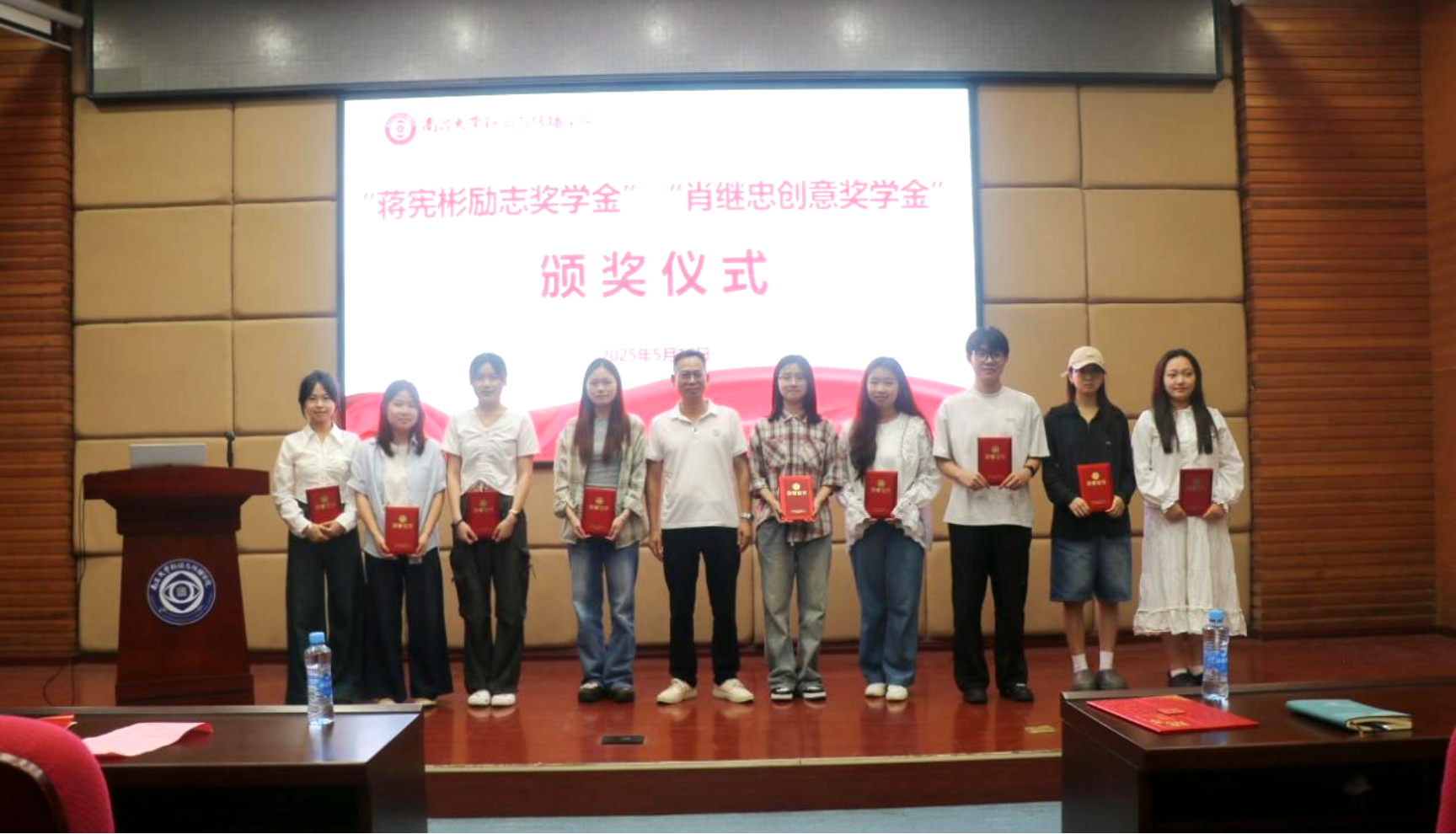 在庄重的颁奖环节,“蒋宪彬励志奖学金”与“肖继忠创意奖学金”迎来第五届颁发。自2021年设立以来,两项奖学金已累计资助本硕博学子50余人,成为学院“以奖促学、以学促行”的重要育人载体。学院党委副书记范若云宣读获奖名单后,蒋宪彬校友为获奖学生颁发荣誉证书,并与同学们亲切合影。 2024 级戏剧与影视学硕士研究生杨伊然作为获奖代表发言,以 “扎根、破局、传承”为关键词分享感悟。她表示:“这份荣誉是过往的勋章,更是未来的灯塔。被光照亮的人,终将成为火炬,引领更多人在逐梦路上坚定前行。”