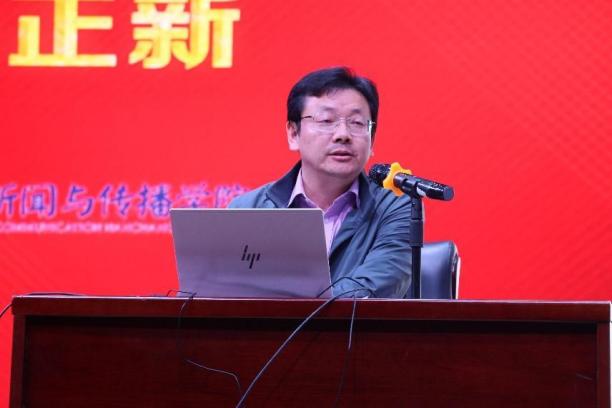 会上,余玉教授还带来了《选题与谋篇:新闻传播学毕业论文写作精讲》讲座。他围绕学术论文本质,从选题原则、标题技巧、结构布局三方面展开,强调选题要达到“问题意识”“立意新颖”“角度刁钻”“切口要小”,标题需用词准确、简洁明晰,论文结构要遵循“起承转合”逻辑,为学生提供实用写作指导。