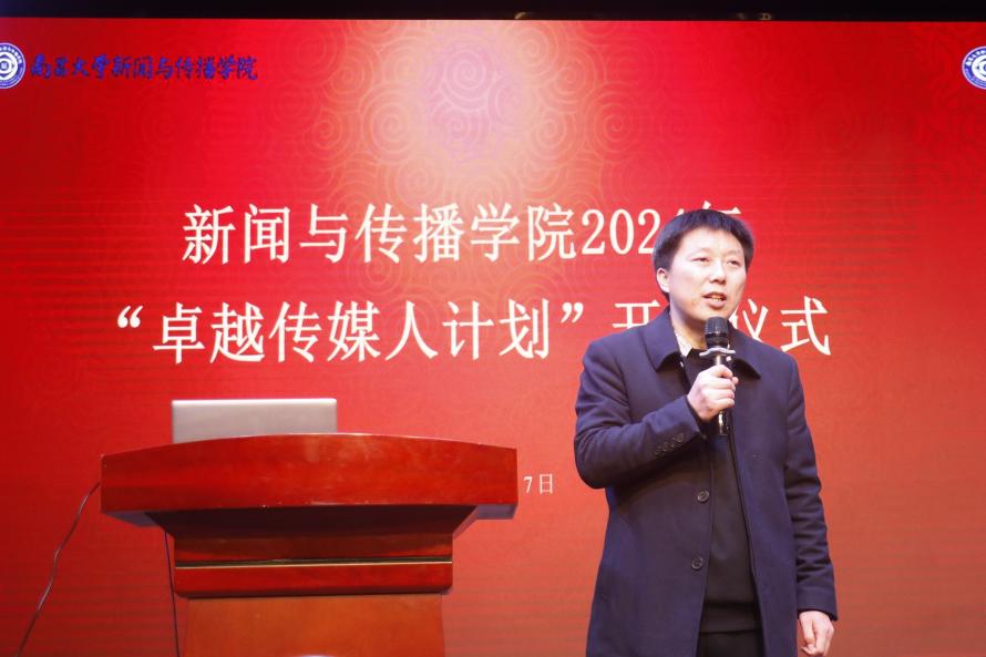 2024年12月17日下午四点,sdaxc“卓越传媒人计划”开班仪式在人文楼一号演播厅顺利开展,院党委书记舒涛、副院长甘雨、副院长王亿本、教师代表、全体辅导员以及学生代表参与活动。 学院积极探索产教融合模式,创新人才培养模式,提高人才培养质量。校内产教融合模式“融媒菁英班”已成功开设三届。2024 年,学院探索校外产教融合模式——“卓越传媒人计划”,旨在将人才培养与校外实战紧密结合,推动广泛传播。该计划主要面向大二、大三学生,目前已招收 60 名学员,涵盖国际传播、健康传播、企业传播、舆情传播、数媒营销传播、创业传播、直播带货、经济传播等多个实训小组。由10位导师分组指导,为同学们的实践能力训练指明了方向,提供了支持与保障。 开班仪式期间,院党委书记舒涛、副院长甘雨、副院长王亿本给“卓越传媒人计划”录取同学颁发录取通知书。院党委书记舒涛在开班讲话中强调,同学们要珍惜这样的创新模式,积极参与校外相关岗位的实践机会,夯实专业能力素养,真正成长为卓越传媒人才,报效祖国、服务社会。副院长王亿本简要介绍“卓越传媒人计划”的创办意图与实施方案,鼓励同学们多实践、多吃苦,真正把自己培养成复合型、实践型、创新型传媒人才。