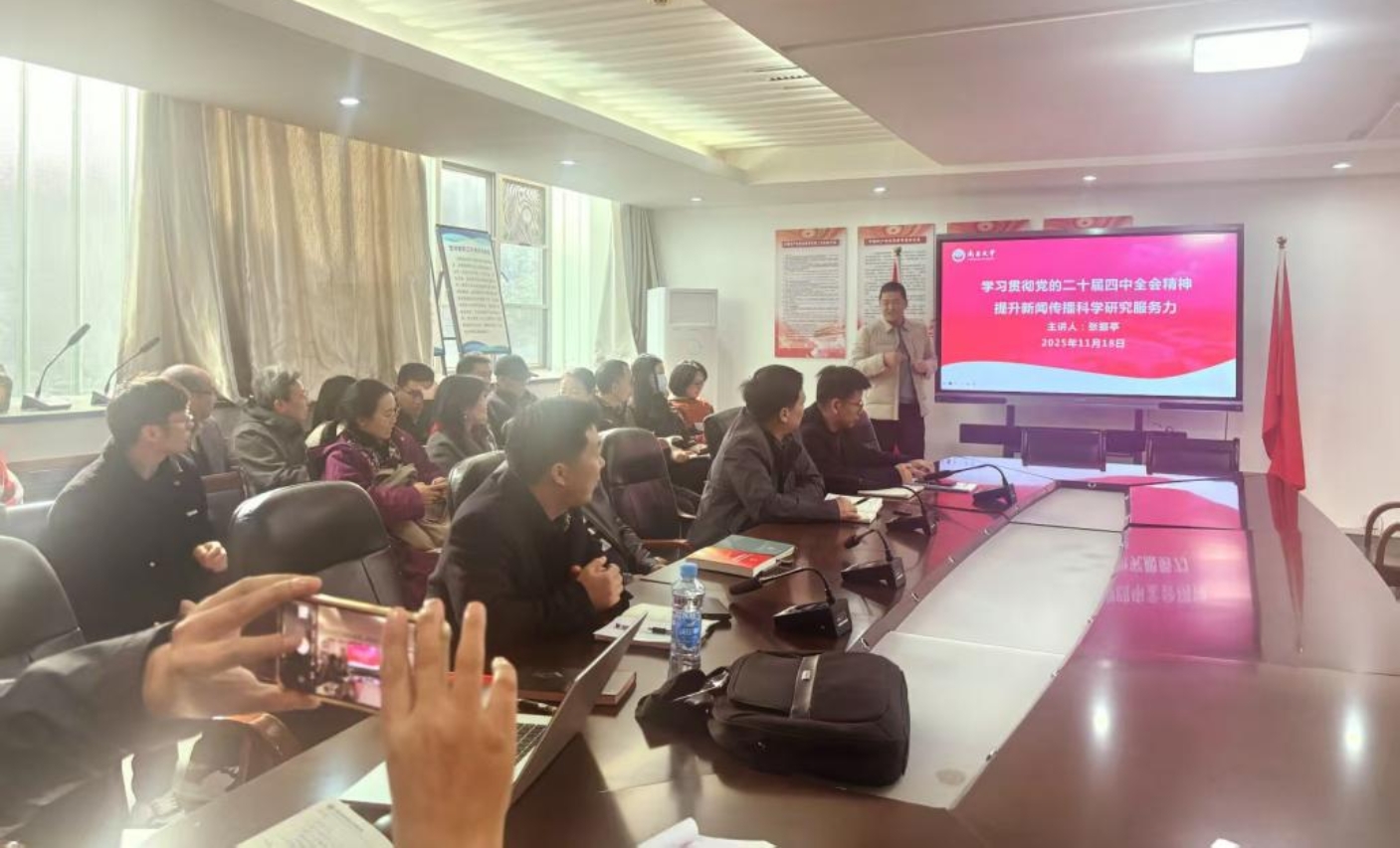 2025年11月18日下午,sdaxc举办党的二十届四中全会精神学术宣讲会。分管科研工作副院长以《学习贯彻党的二十届四中全会精神,提升新闻传播科学研究“服务力”》为题,结合会议精神和学院学科发展、科学研究情况进行学术宣讲。全院教职工参加。