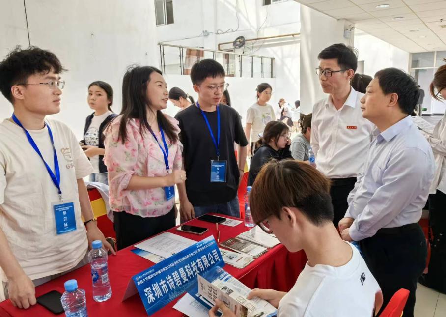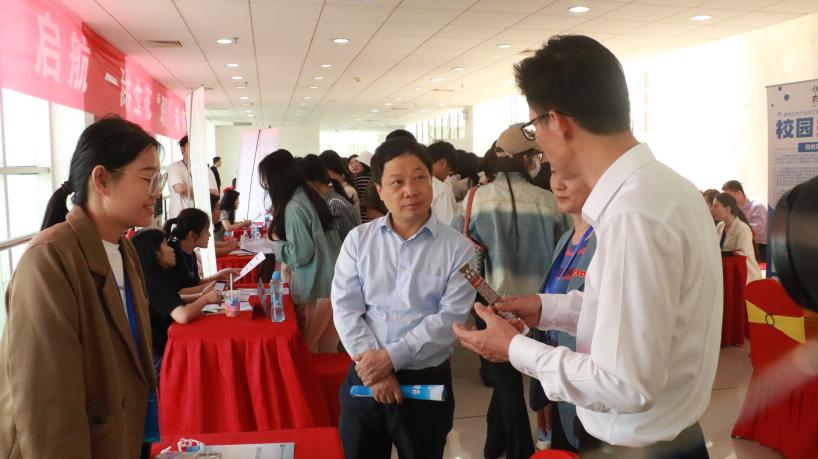 校党委常委、副校长陈始发、校招就处处长孔爱民和院党委书记舒涛一行人来到招聘会现场,逐一走访各单位展位,进一步了解用人单位的人才需求,对到场单位表示热烈欢迎和衷心感谢,关心学生应聘情况和就业意向,为学生就业送上温暖关怀。