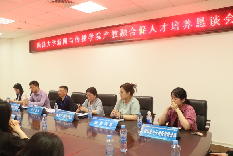 “本次招聘会学院方面准备得很充分,整个招聘会部署得比较全面,细心照顾到了参会单位各方面的需求,让人感到很贴心。”《当代江西》杂志社代表谈到。用人单位对此次招聘会的前期筹备、会务组织给予较高评价,对毕业生的专业素养予以肯定。校友企业上海归农集团代表表示:“在沟通过程中,同学们展示出来的表达能力很优秀,其他方面也很突出。”江西日报社(江西报业传媒集团有限责任公司)代表也表示:“学生的总体素质比较高,和我们的所招岗位匹配度也很高。” 招聘会后,学院与南昌广播电视台等6家用人单位代表召开了产教融合促人才培养恳谈会,倾听用人单位对学院人才培养意见建议,并与单位代表达成了共建校外实践教育基地、毕业生就业基地建设意向。 会上,学院党委书记舒涛表示,“在全媒体时代,新传学生的就业面临诸多挑战。学院希望能够与用人单位携手,根据用人单位的需求来制定相关人才培养计划,为用人单位输送媒体转型时代下高素质复合型人才,解决学生就业难题,实现共赢。”