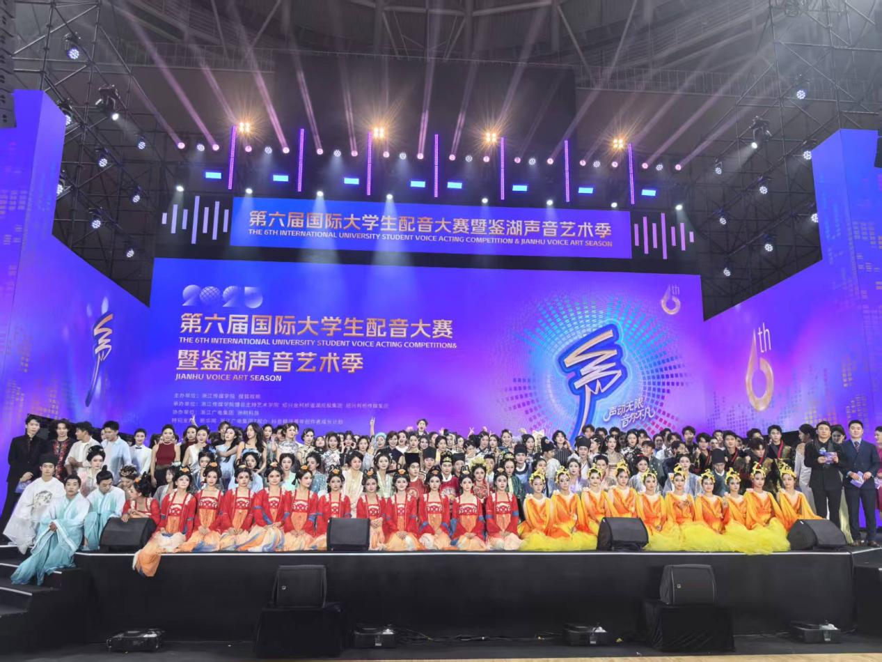 在刚刚落幕的第六届国际大学生配音大赛中,我院口语传播系学子凭借扎实的专业能力和出色的现场表现,在众多参赛队伍中脱颖而出,共获得全国特等奖1项、一等奖1项、三等奖2项,奖项涵盖广告、动漫配音两个赛道。 10月30日晚,由中国高等院校影视学会指导,浙江传媒学院与搜狐视频联合主办的第六届国际大学生配音大赛暨鉴湖声音艺术季在绍兴市柯桥区体育中心体育馆开幕。这场汇聚全球高校配音人才的顶级赛事,共吸引全球437所院校、15618件作品激烈角逐。 来自播音231班的钟乐仪、任润天、吴童、王湛翔四名同学一路过关斩将,最终以全国第七的名次荣获动漫游戏组全国特等奖,创下我校在该项赛事取得的最好成绩。 此外,播音241班王海博同学荣获广告片组全国一等奖,播音241班的魏子涵、黄子昌两位同学获动漫游戏组全国三等奖。播音251班的浦砻宁、武怡含、张玥莹、刘子钰、刘琼尹、刘美萍六位同学获动漫游戏组全国三等奖。我院口语传播系蔡静、钟鸣、张佳妮、刘擎四位老师获优秀指导教师奖。我校获优秀组织奖。
