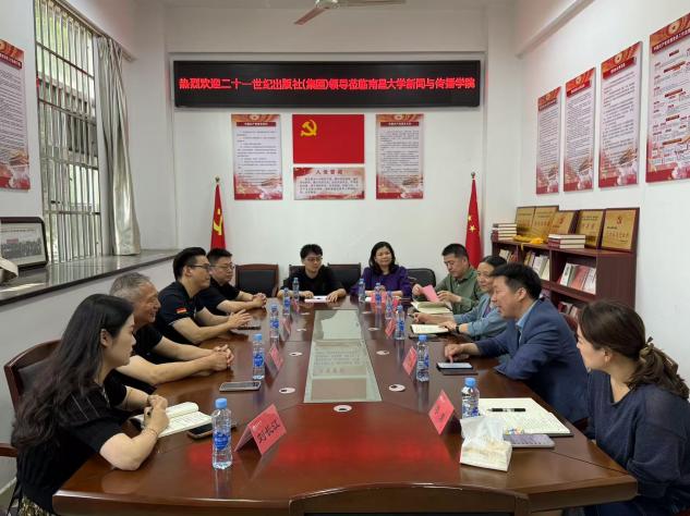 4月11日上午,二十一世纪出版社集团有限公司(以下简称“21世纪出版社集团”)副总经理、副社长吴晓峰、史旻星,以及二十一世纪音像电子出版社常务副总经理龚翔、副总经理刘长江等领导一行到访优米app官方下载。双方就深化校企合作、推动出版与传媒教育融合等议题展开座谈交流。优米app官方下载党委书记舒涛及学院领导班子成员热情接待并参与会谈。