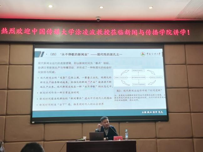 12月7日上午,中国传媒大学教授涂凌波在人文楼A143为我院师生作了一场以《现代新闻业与时间性:新闻时间的理论潜力及其展望》为题的精彩学术讲座。这也是我院“新闻传道”系列讲座的首场活动。
