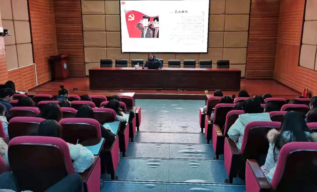 在培训会开始前,李部长与同学们讲述了共产党的发展历程,如何更好地服务于社会和人民。本次入党培训班课致分为三个部分,分别为:“中国共产党是一个什么样的政党”、“共产党的初心和使命是什么”、“青年与共产党是什么关系”。