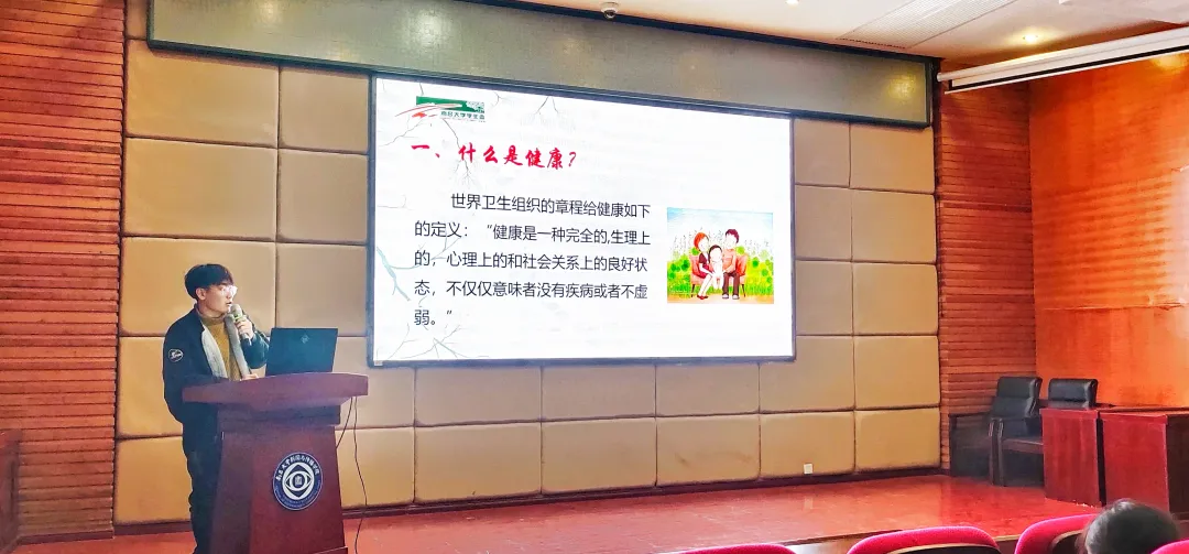 本次会议以 PPT展示与讲解的形式,对心理健康的含义及其表现做了详细的说明。并就相关心理问题的含义、表现、危害、以及其应对措施进行了深入且细致的解释。 翟思腾同学援引世界卫生组织的相关资料对心理健康进行说明,指出:“心理健康是指一个人的生理,心理与社会处于相互协调的状态。即智力正常,情绪稳定与愉快、行为协调统一、良好的人际关系、良好的适应能力。”同时,阐述了一个心理健康的人的应有特征,即:“本人不感觉痛苦(即在一个时间段中快乐的感觉多于痛苦的感觉),他人不感到异常(心理活动与周围环境相协调,没有与周围环境格格不入的感觉),社会功能良好(即能胜任社会角色,做好自己分内该做的事)。”