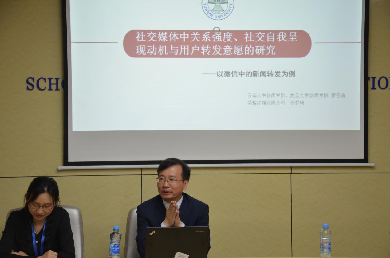 本网讯(通讯员:刘雅婷)在百年校庆之际,我院特邀院友、云南大学新闻学院院长廖圣清教授,于5月1日下午在人文楼B136开展了一场主题为社交媒体用户研究的座谈会。