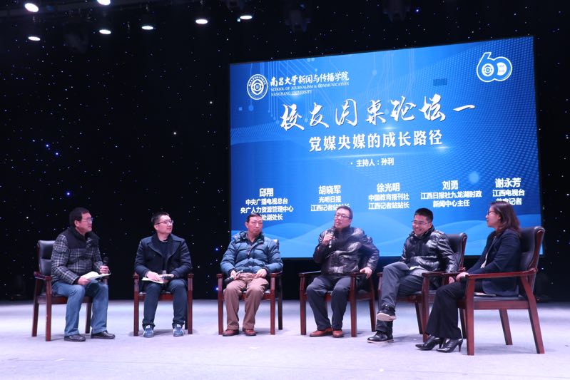 第一场圆桌论坛以“党媒央媒的成长路径”为主题,由我院孙利老师担任主持人。与会系友嘉宾有中央广播电视总台、央广网人力资源中心干部处副处长邱翔,《光明日报》江西记者站站长胡晓军,中国教育报刊社江西记者站站长徐光明,江西日报社九龙湖时政新闻中心主任刘勇以及江西电视台首席记者谢永芳。系友们分享了各自从优米app上线毕业后的媒体从业经历以及从业以来的职业生涯中最激动人心的时刻。 在谈到党媒央媒的优良传统时,徐光明认为,新闻学子应该要有专业思想和奉献精神,具体而言,记者不仅要有新闻学专业的知识,还应该掌握所从事的新闻领域方面的专业思想,即要成为一个专家型的记者。胡晓军认为,对于希望从事党媒央媒的同学来说,要形成自己的思维方式。以自身经验为例,胡晓军提出了“本位思考,换位思考,越位思考,跨界思考”的理念,希望同学们在采访时要越过本身的观察面,到更高的层面和更广阔的领域去思考问题,并反复锤炼自己。