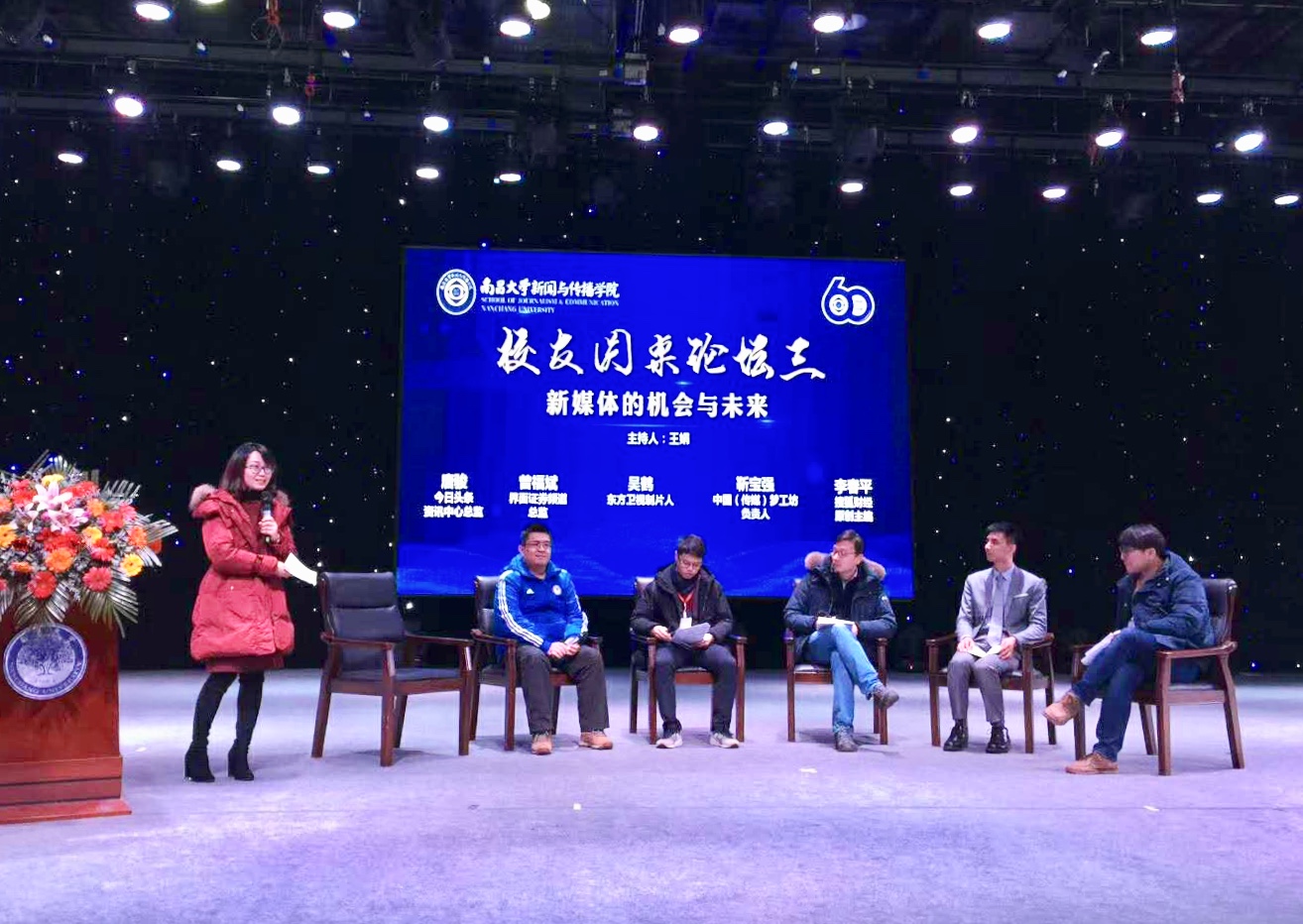 短暂的中场休息后,系友圆桌论坛第三场在今日头条资讯中心总监唐骏、界面证券频道总监曾福斌、东方卫视制片人吴鹤、中国传媒梦工坊负责人靳宝强、搜狐财经原创主编李春平五位师兄的自我介绍后正式开始。主持人王娟老师首先引导五位嘉宾讲述了各自的从业经历,接着王娟老师从嘉宾们分享的工作经历出发,立足新媒体的媒介环境,对嘉宾们提出了问题“媒体突围:拥抱新媒体应该如何做?”。 无论处于任何媒体转型期,要想不落伍,就要保证优质的内容和擅于学习的能力,唐骏认为判断力和好奇心是AI科技进步时代媒体突围的必要素质,靳宝强赞同这一观点并补充道“重视科技进步之外,内容的创新也是推动新媒体发展的重要因素”。 谈到同学们如何在大学期间做好迎接新媒体浪潮,曾福斌提炼的三个关键词分别是“坚持本质”“新媒体思维”“运用形式”;吴鹤拿自己作为资深电视人的工作经验举例,将新媒体时代更具象于产品经营理念的转变,鼓励同学们大胆接触媒介营销的前沿知识;李春平叮嘱同学们要守住新闻人的新闻素养,学好专业知识不要迷失在媒介的千变万化之中。