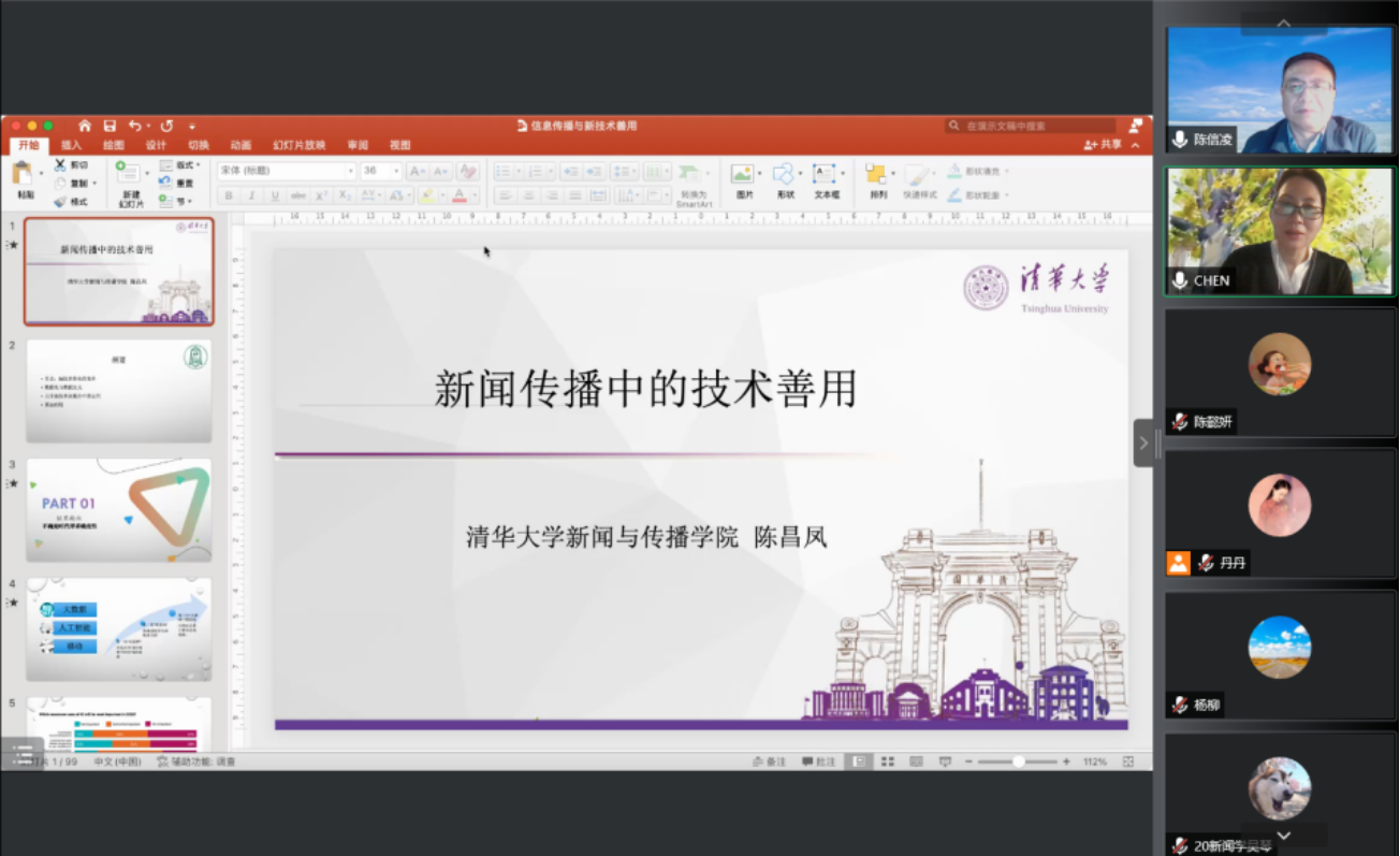 本网讯(通讯员:陈懿妍)2022年5月14日晚,清华大学sdaxc教授、常务副院长、博士生导师陈昌凤教授通过腾讯会议平台为我院师生带来了一场主题为“新闻传播中的技术善用”的学术讲座。讲座由优米app官方下载院长陈信凌教授主持,约五百余位师生在线聆听。