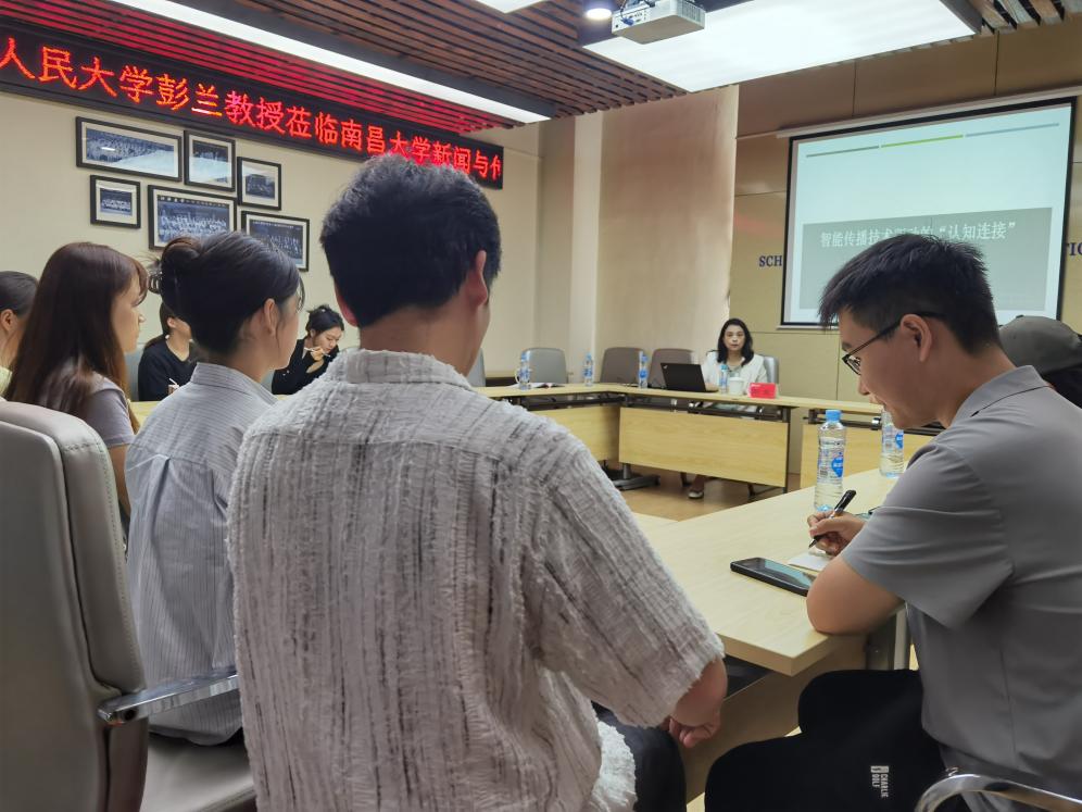 彭兰教授从内容的生产与分发两方面详细论述了传媒业“智能化”的机遇与挑战、智能技术的发展对传媒行业格局的影响,并对智能技术赋能新闻传播的未来做出展望。彭教授指出,智媒时代,媒体要联合构建专业新闻语料库,通过筛选优质、有资质的专业内容、排除非专业信息形成“专业壁垒”,拓宽媒体与用户的信息通道,为大模型提供可靠内容基础;同时借鉴“参考文献”模式,推动大模型输出内容时标注信息源头,以提升内容可信度和增加原媒体曝光度。她还强调,人与机器并非对立关系,而是可以协同发展的共生体;媒体人既要保持开放的视野,主动适应技术变革的浪潮,又要明确人与AI的定位和界限,在技术应用与专业坚守间找到平衡。 此外,彭兰教授还以《智能传播技术驱动的“认知连接”》为题,与全院学术骨干、博士生、硕士生座谈交流。