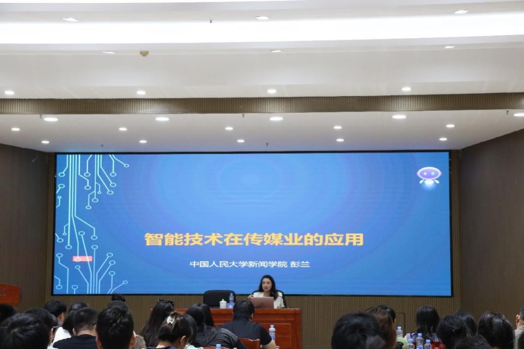 2025年9月8—9日,中国人民大学彭兰教授应邀到我院讲学,开展题为《智能技术在传媒业的应用》的学术讲座。讲座由视听传播系主任王倩教授主持,学院学术骨干、研究生、本科生等100多名师生到场聆听。