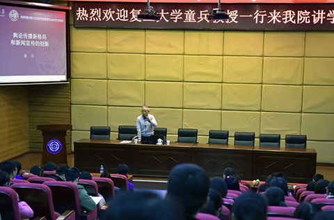 随后,童兵分析了改革开放36年以来,中国舆论环境发生的历史性变化。社会结构的重组造成了社会主体的多元化,中国社会的一个突出变化是利益主体和利益分配的差异化,形成诉求表达众生喧哗的格局。 他认为,由于采取以空间换取时间,为谋取眼前利益而牺牲长远利益等错误发展方针,中国当下突发公共事件和群体性事件层出不穷,民众的舆论诉求走向无序。新媒体提供的多样化表达渠道和表达形态使舆论表达呈现出多样性、分散性和个体性特征,导致了舆论表达的无序现状。 面对无序的舆论表达,童兵认为,舆论引导同舆论表达之间存在着相辅相成的辩证关系。充分的舆论表达是进行有效舆论引导的基础和前提,有效舆论引导又为有序的舆论表达创造舆论氛围,舆论表达同舆论引导的自发性与自觉性在一定条件下互相转化。他说,认识并处理好这种辩证关系,一定程度上可以克服普通民众舆论表达的无序性。 最后,童兵分析了新媒体时代下舆论传播和引导出现的新特点。他说,公众在舆论形成、传播以及引导中的地位与作用日显重要,舆论传播呈现碎片化趋势,社会舆论呈现多元复杂的状态,众生喧哗成为社会舆论的常见景观。新媒体是提供平等、公开、海量的信息发布意见发表的平台,但随着社会舆论可控性下降,舆论引导取得理想效果的难度越来越大。 面对新媒体时代舆论引导的新态势,童兵鼓励大家应该敬畏民众,敬畏舆论,把信任公众作为引导舆论的基本准则。不把舆情当敌情,不把公众当对立面,不把意见领袖当“异见领袖”,认识和尊重舆论传播规律。他说,新媒体时代只是传播手段和传播渠道变了,舆论传播基本规律是不变的,对此要加深认识,坚持坚守。 童兵的演讲热情洋溢,在理论讲解中论述人生道理,尽显学者智慧。在近三个小时的演讲中,全场掌声阵阵。