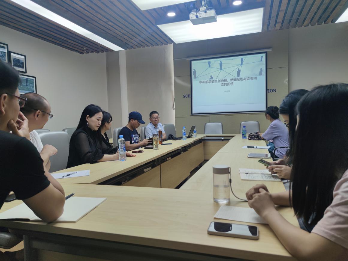 6月26日,复旦大学新闻学院蒋建国教授来到我院,开展了一场主题为“甲午前后的报刊地理、新闻呈现与读者阅读的回想”的学术讲座。 ![]() 蒋建国教授从自身多年的研究亲历出发,详细讲述了甲午前后中国报刊和知识分子的活动。他认为,当时历史大潮下的中国知识分子在思想上发生了明显的变化,比如他们在报刊阅读内容上的变化。蒋教授表示,以往的新闻史学研究多以报刊报道等材料作为研究客体,对其文本结合历史的背景赋予意义,而在对甲午前后这一段历史的研究中,他是将报刊材料作为引子,将研究对象转向报纸的读者,从而弥补了“阅读史”研究的缺失。 讲座中,蒋建国教授运用丰富的史料和历史人物的故事,深入浅出地阐述了甲午前后的报刊地理、新闻呈现与读者阅读的历史。此外,蒋教授还与我院硕士博士生进行了现场交流,令同学们收益颇丰。