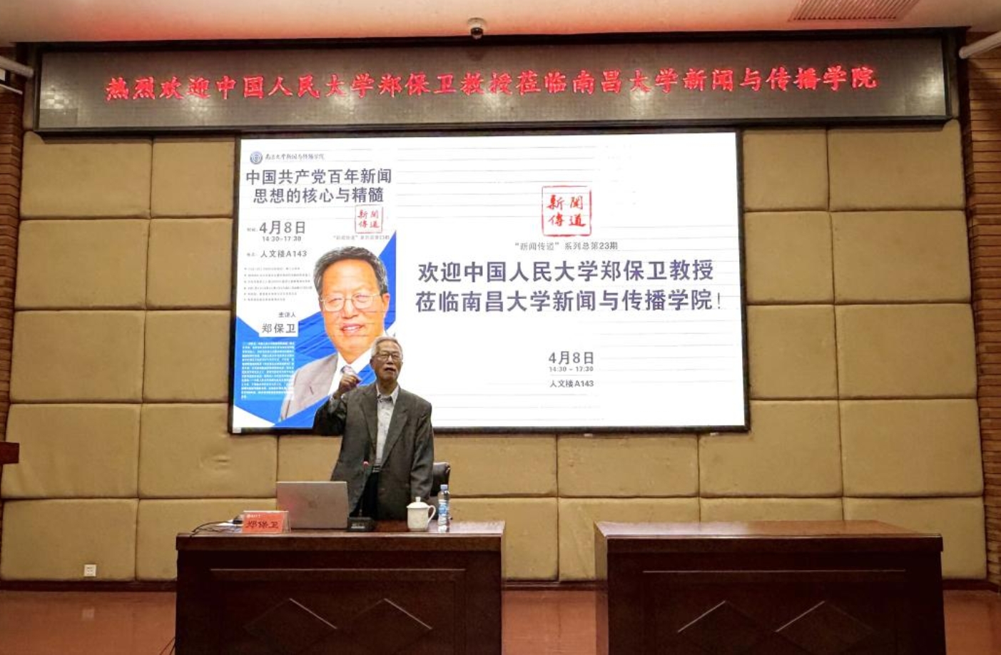 郑保卫教授围绕“为什么办报”“为谁办报”“办什么样的报纸”以及“怎样办好报纸”这四个核心问题,系统梳理了中国共产党百年新闻思想的发展历程与理论精髓。他强调,中国共产党始终把党报党刊作为强大的“思想武器”和重要的“政治阵地”,新闻事业在党的革命、建设和改革开放历程中发挥了不可替代的作用。 郑教授结合丰富的案例和时事热点,深入阐释了中国共产党人的政治家办报理念、党性原则、以人民为中心的工作导向以及群众办报等中国共产党新闻思想精髓。他指出,这些思想不仅是中国共产党新闻事业宝贵的精神财富,也是新时代新闻工作者必须牢牢把握的行动指南。 据悉,郑保卫为中国人民大学新闻学院教授、博士生导师,教育部社会科学委员会委员兼新闻传播学科召集人,中央马克思主义理论研究和建设工程新闻学科专家,中国人民大学克思主义理论研究和建设工程新闻学科首席专家,中宣部、教育部特别委托项目《马克思主义新闻观研究》首席专家,享受国务院政府特殊津贴专家。曾任全国新闻学研究会会长、高等学校新闻传播学科教学指导委员会委员、教育部人文社会科学重点研究基地——中国人民大学新闻与社会发展研究中心主任、中国新闻学院研究生部主任、广西大学sdaxc院长等。出版著作30余部,发表论文500余篇,20余项科研成果获国家和省部级奖项。(撰稿:陈小美。)