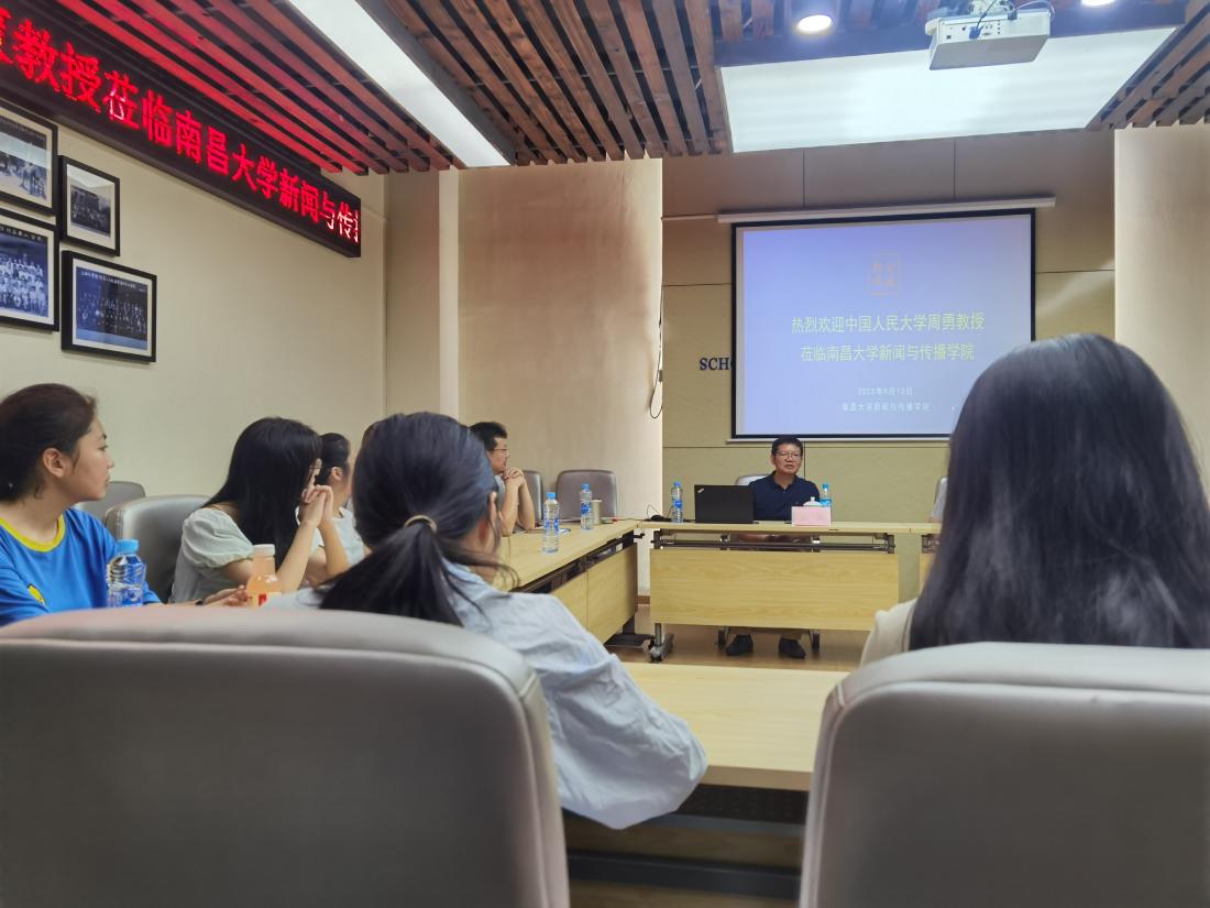 2025年9月10日,中国人民大学新闻学院院长周勇教授应邀到我院讲学,开展题为《正确处理与媒体的关系:构建主流舆论引导的良好生态》的学术讲座。讲座由我院王亿本副院长主持。学院学术骨干、研究生、本科生等100多名师生到场聆听。
