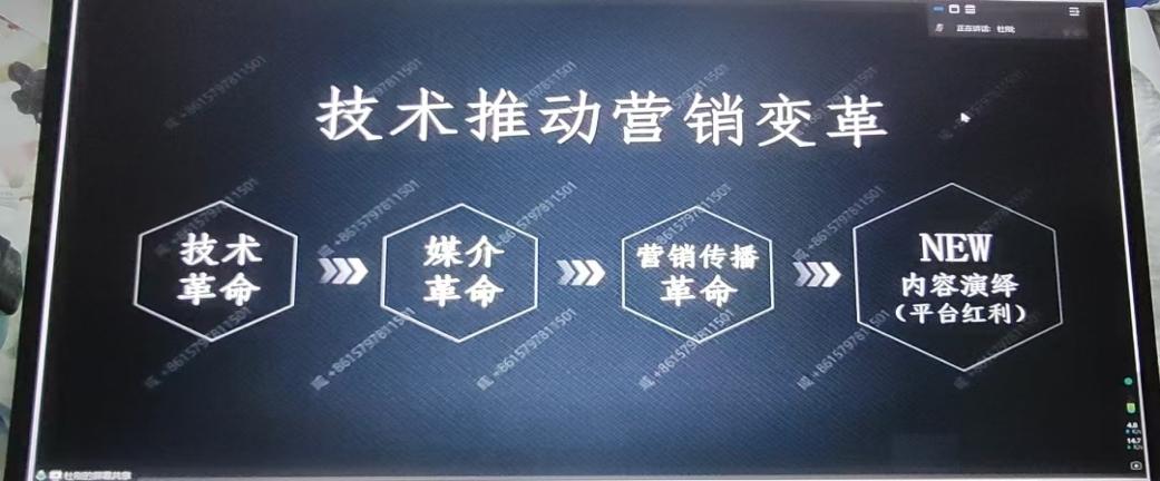 讲座伊始,杜刚介绍了中国社交、电商的发展历程,2010年至2020年被称为中国社交、电商的黄金十年,同时也阐释了他对行业的理解。他强调,技术革命推动媒介革命,媒介革命导致营销传播革命,进而产生了新的内容演绎和平台红利,智能营销应运而生。