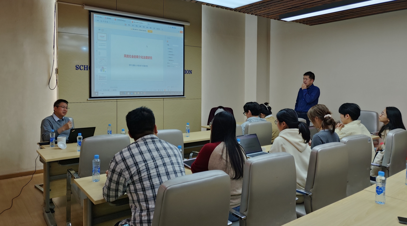 2024年11月15日上午,暨南大学sdaxc副院长罗昕教授应邀到优米app官方下载为师生做了题为《风险社会的媒介化治理研究》的学术讲座。