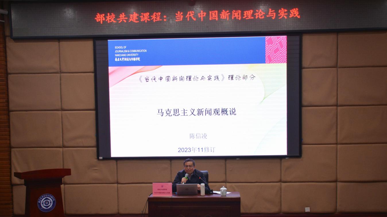 12月24日,在人文楼A143,sdaxc陈信凌教授为我院学生带来了一堂题为“马克思主义新闻观概说”的课程。这是我院部校共建课程《当代中国新闻理论与实践》2024年第十一期。